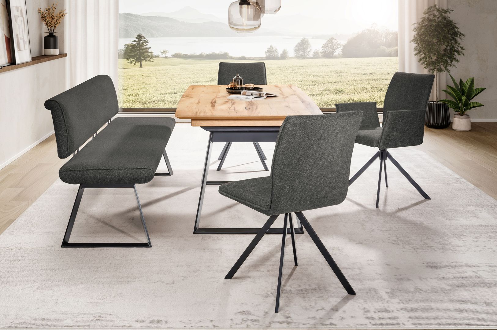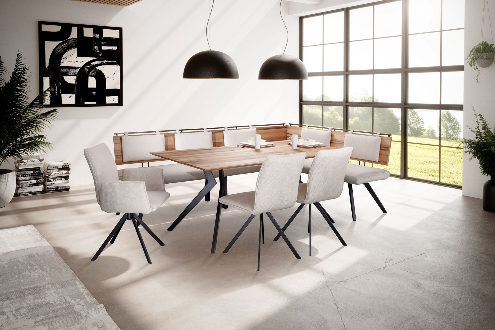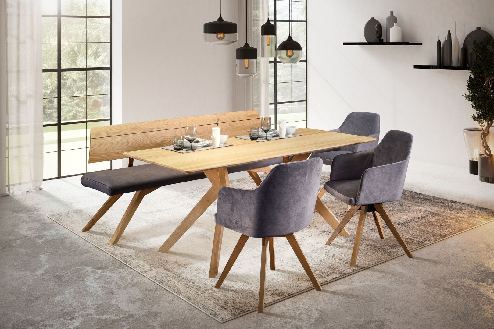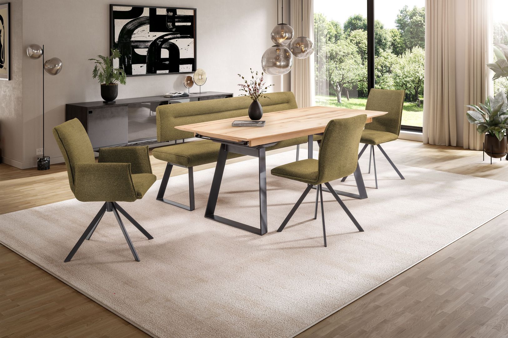 In der neusten Dining-Kollektion „Lassan“ vereinen sich beste Materialien und maßgeschneiderte Designs mit höchstem Sitzkomfort. Dank verschiedener Lehnenvarianten und individuell gestaltbaren Außenseiten lässt sich das Modell perfekt an unterschiedlichste Bedürfnisse anpassen. Ein besonderes Highlight ist die Holzart Kupfereiche, die in zwei Beiztönen erhältlich ist. Mit ihrer warmen, lebendigen Maserung schafft sie eine einladende Atmosphäre – ob in der offenen Wohnküche oder im eleganten Speisezimmer.