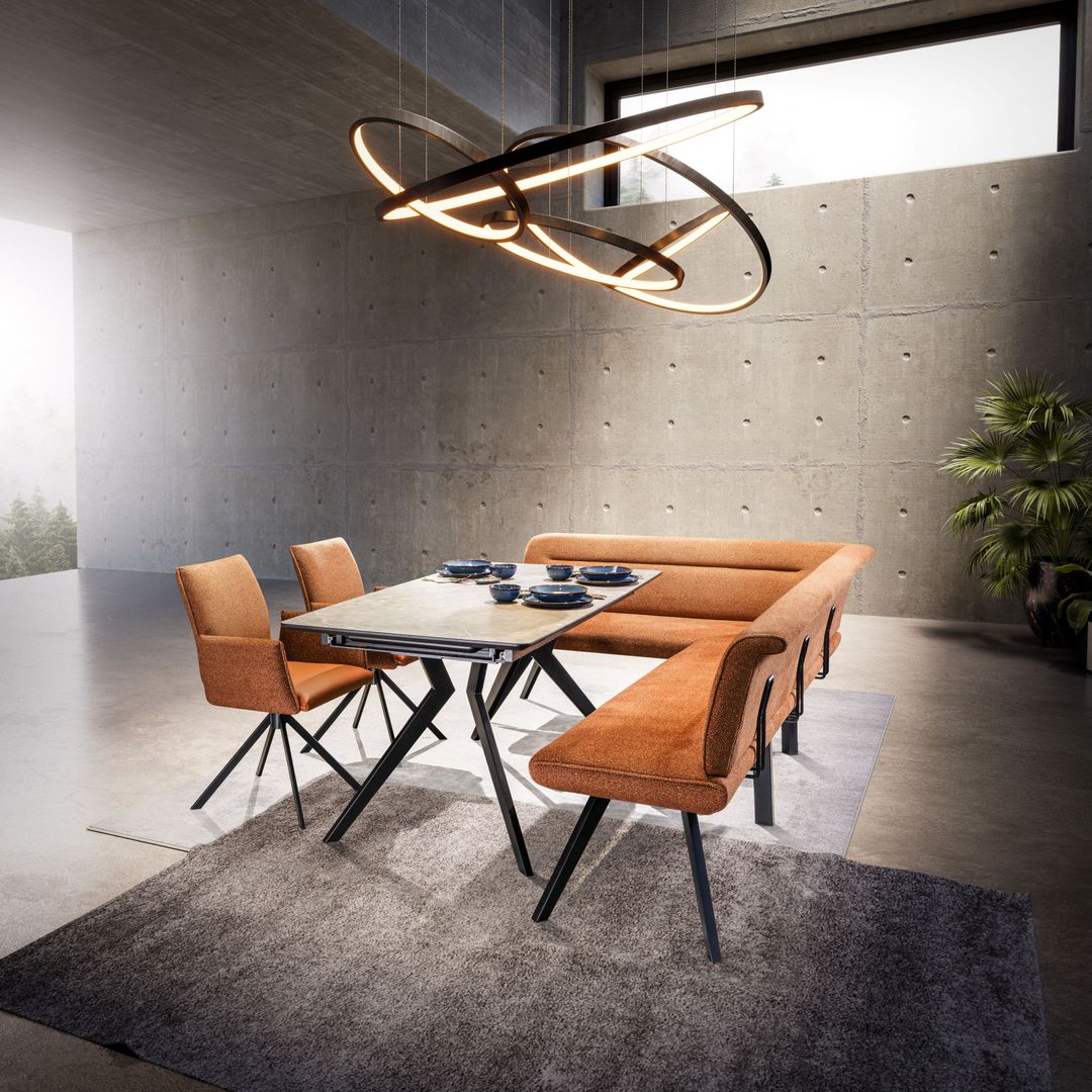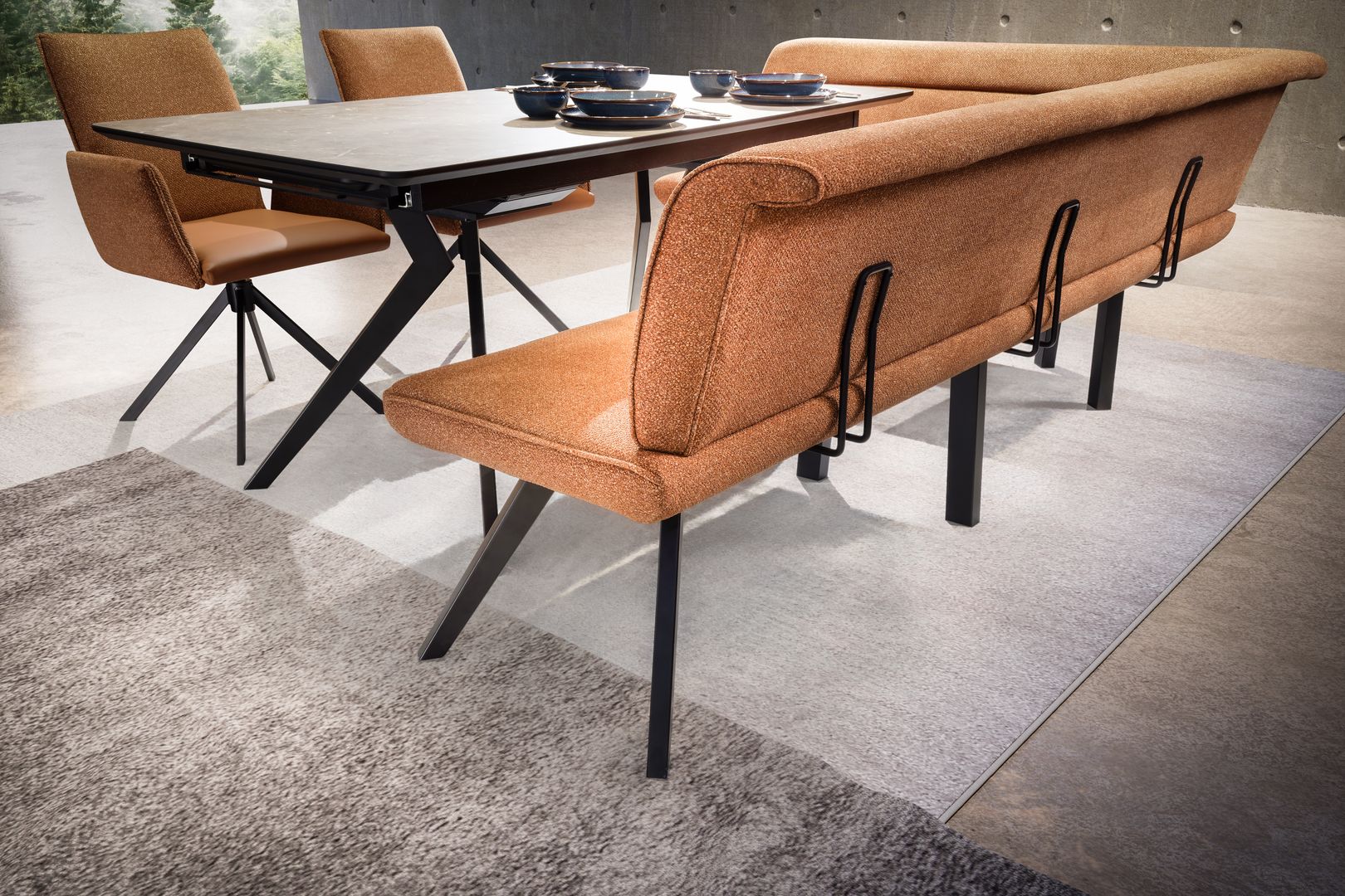 Für noch mehr Individualität stehen fünf unterschiedliche Bankaußenseiten, ein ganzes Tischsystem sowie eine große Auswahl an hochwertigen Bezugsstoffen und Materialien zur Verfügung. Ob klassisch-elegant, modern oder puristisch– mit Siena lassen sich unzählige Kombinationen kreieren, die Ihren Wohnraum perfekt abrunden.