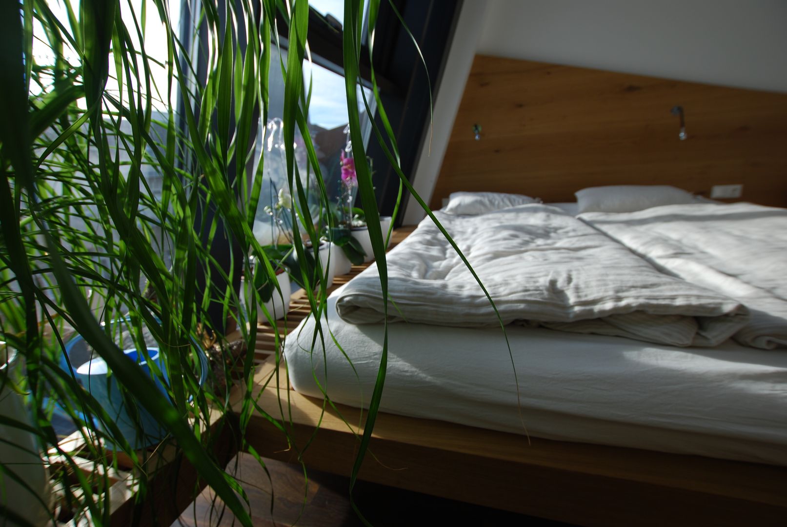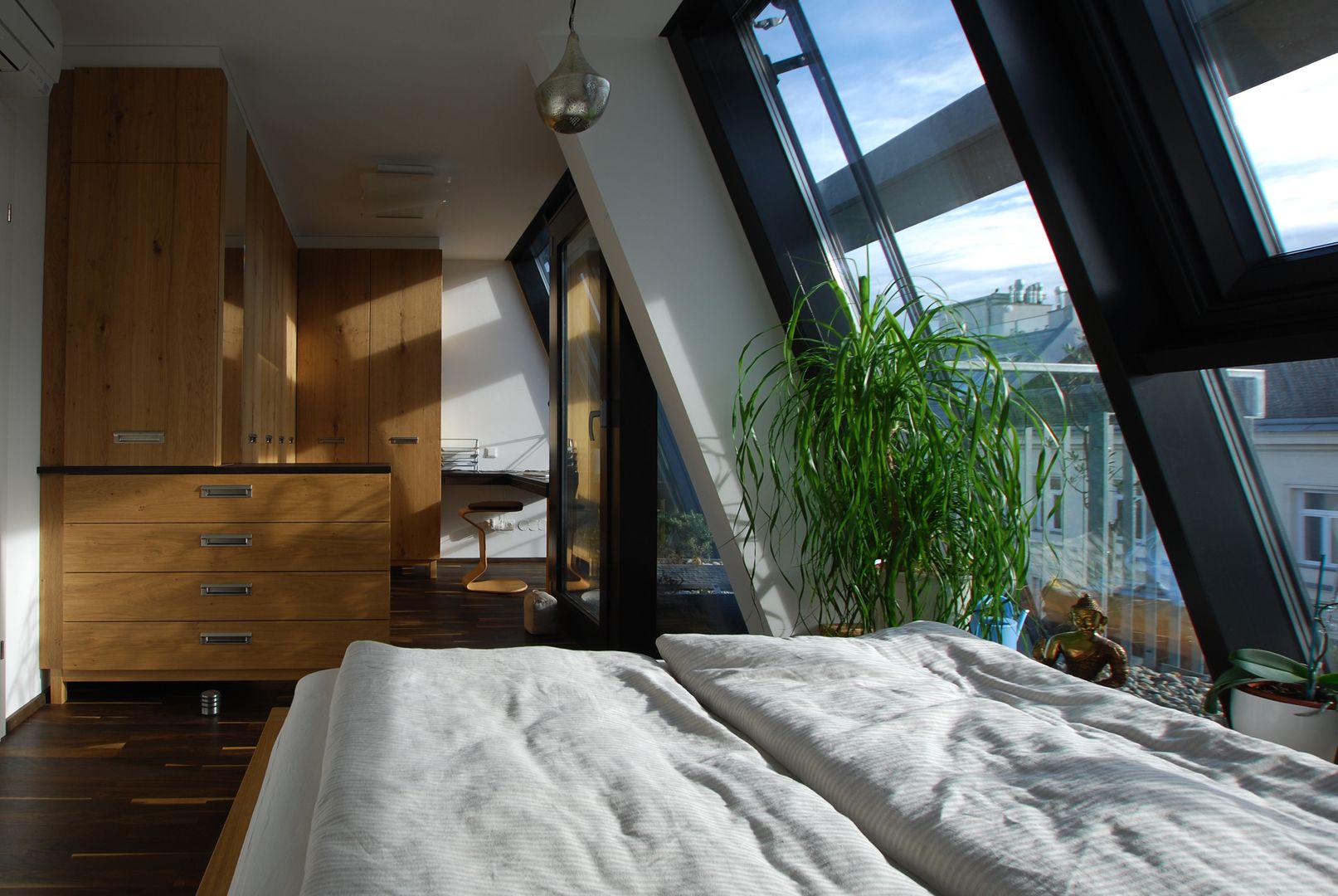 Tolle Lösung eines Schlafzimmers mit schrägen Dachfenstern in der Großstadt