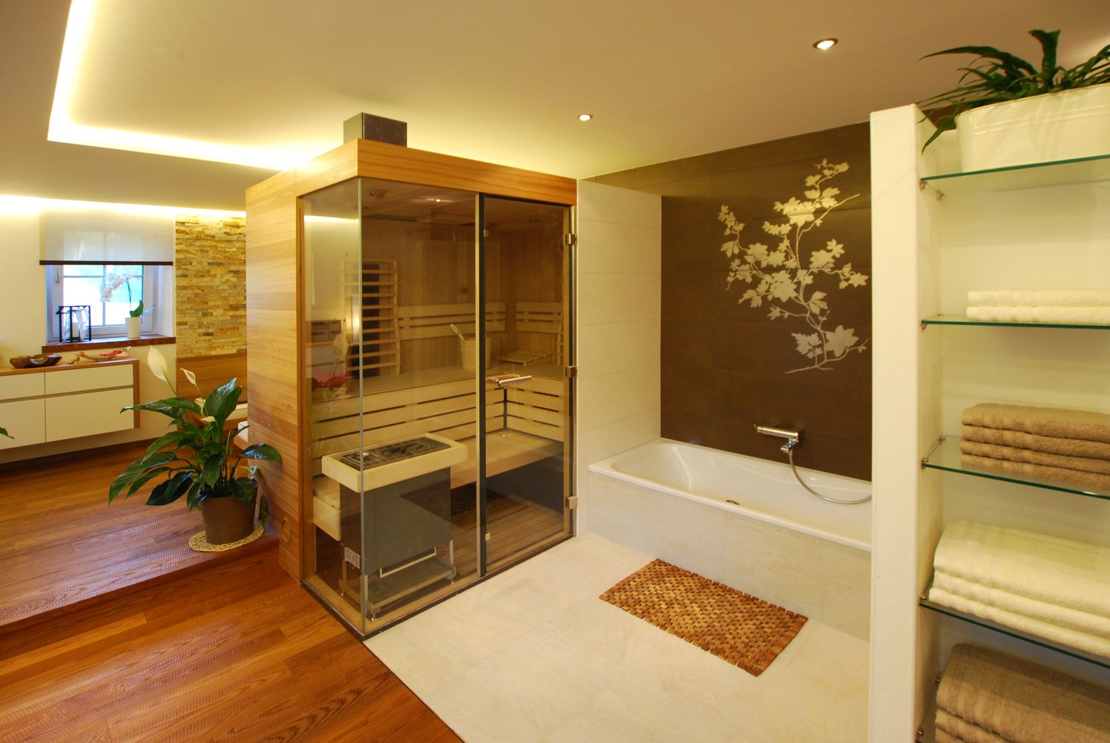 Tolles Zusammenspiel zwischen Badezimmer und Spabereich