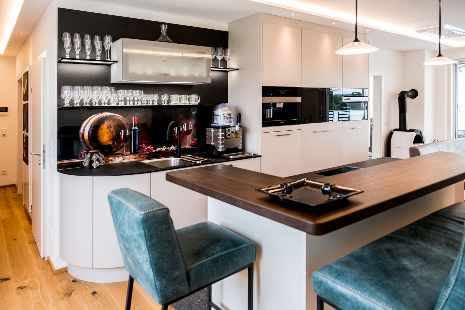 Penthouseküche mit Barcharakter