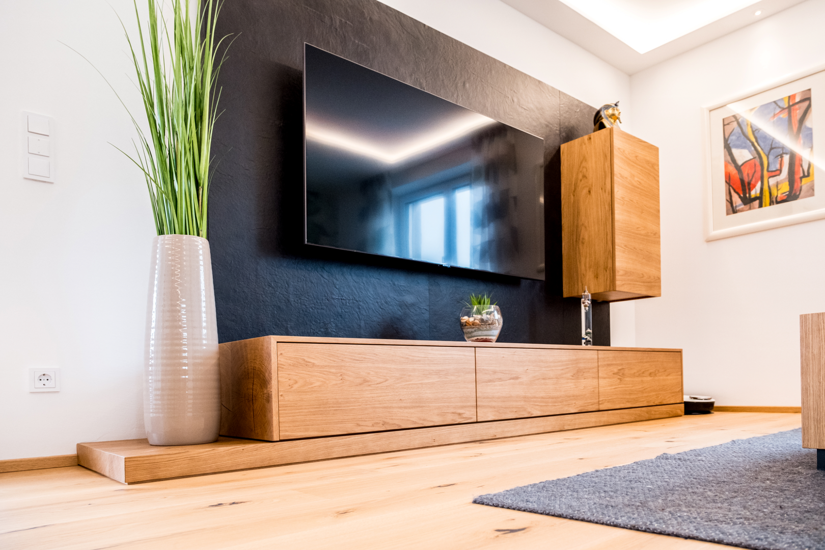 Materialkombinationen mit Eiche, Stahl, Schiefer und Lack